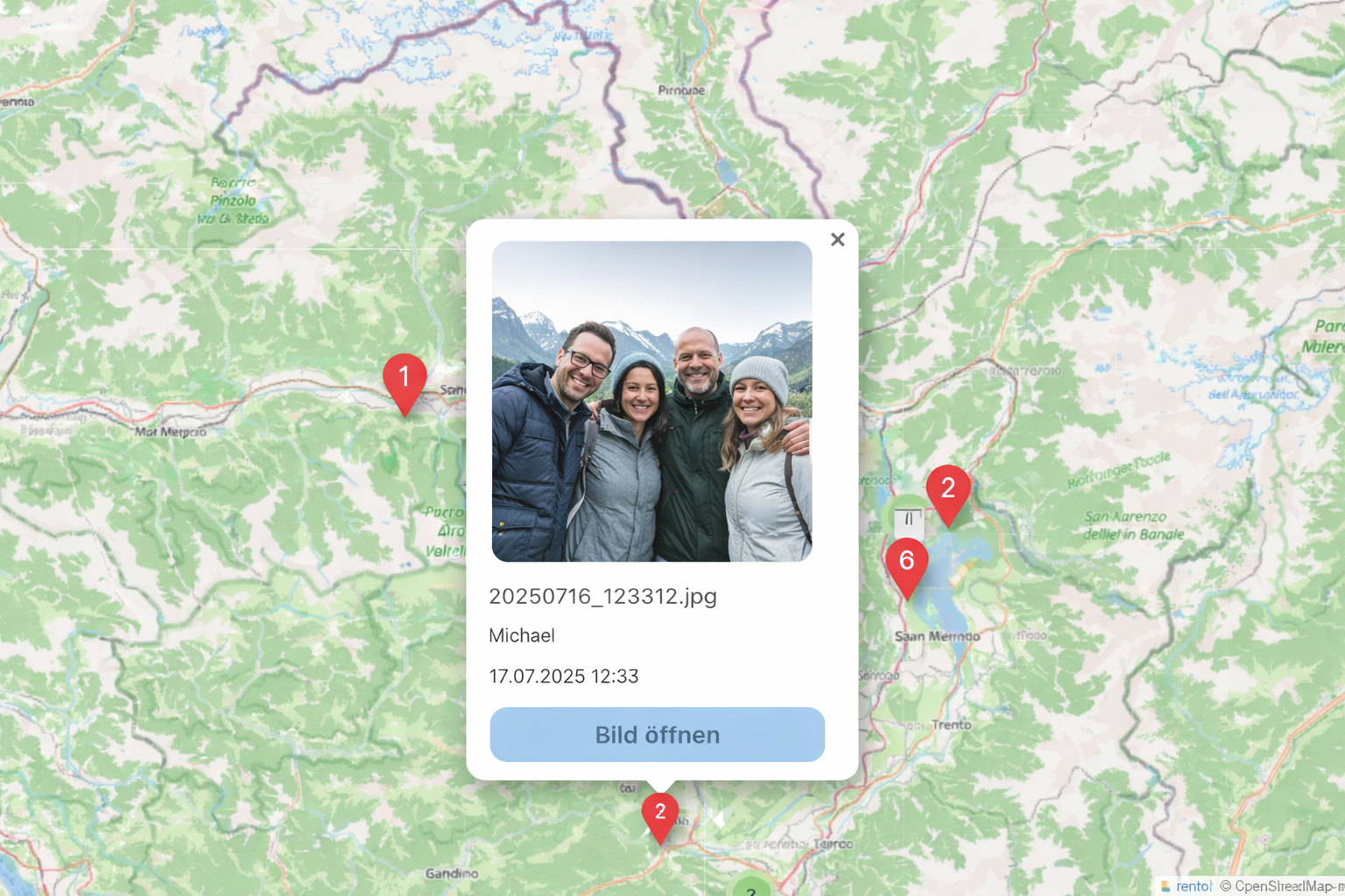 Bilder und Erinnerungen direkt auf der Karte wiederfinden.