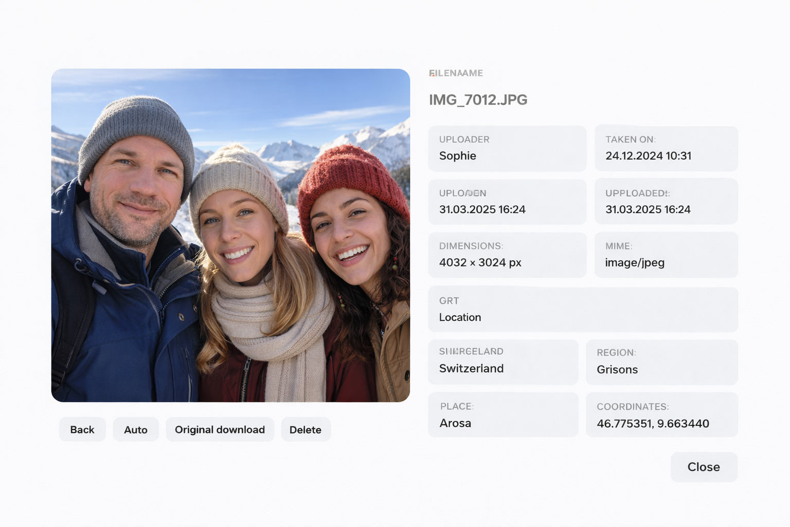 Lege deine eigene Gruppe an, lade Mitglieder ein und sammle Bilder gemeinsam in einer geschützten Umgebung.